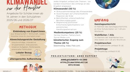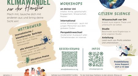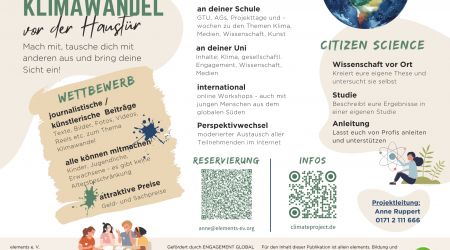 Du hast das Gefühl, du spürst den Klimawandel bereits? Vielleicht macht dir das Thema etwas Sorge? Jedenfalls willst du mehr wissen, selbst aktiv werden und dich kreativ ausdrücken?
